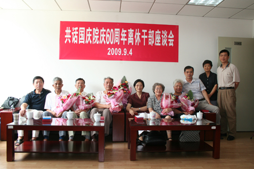 2009年9月4日上午,我所召開了“共話國(guó)慶院慶60周年離休干部座談會(huì)”。所離休老干部,黨委書記郭英與所工青婦負(fù)責(zé)人、研究生代表及離退休管理干部共20多人參加了會(huì)議。