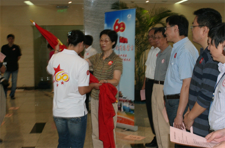 大家早上好,今天我們以升旗宣誓的方式歡慶祖國六十華誕,表達了大家對祖國的美好祝愿,展示了技物所年輕人朝氣蓬勃的精神風貌和。