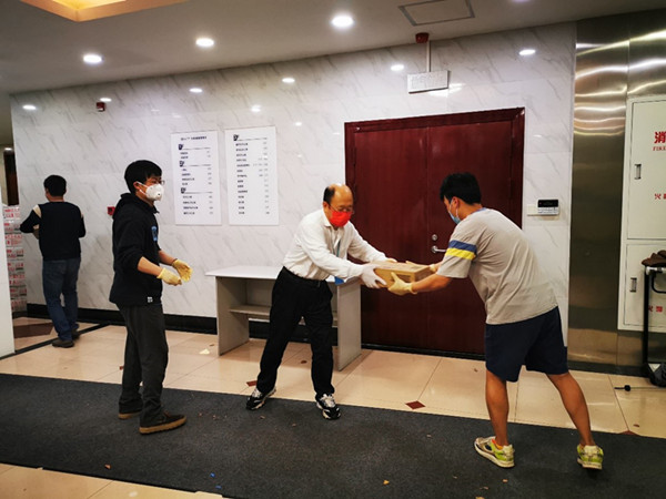 除所領(lǐng)導(dǎo)“熱線電話”外,為解決園區(qū)內(nèi)堅守在科研、保障一線職工家庭的燃眉之急,所疫情防控領(lǐng)導(dǎo)小組召開專題會議,通過與各支部/部門統(tǒng)計梳理急需幫助解決的職工家屬名單,確保“排摸全覆蓋、統(tǒng)計無遺漏”。隨后,綜合管理部協(xié)同德虹公司等在24小時之內(nèi)完成了應(yīng)急物資保障包的采購,在志愿者幫助下完成分裝。大家連續(xù)作業(yè)、爭分奪秒,只為生活物資保障包能夠在最短時間到達職工家屬手中。截止4月12日中午,100份家屬應(yīng)急物資包已全部配送完畢。