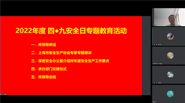 在上海合力戰(zhàn)“疫”的關(guān)鍵時(shí)刻,為提升職工、研究生的安全意識(shí),助力復(fù)工復(fù)產(chǎn),5月27日,上海技物所在線舉辦“四·九”安全日專題教育活動(dòng)。本次活動(dòng)由保密安全辦公室組織策劃,工程一室承辦,第四研究室、硅器件室、紅外器件室、組件室、材器中心、物理室、精密制造中心等部門聯(lián)合協(xié)辦。活動(dòng)氛圍活躍,全所900余人在線參與,創(chuàng)下了“四·九”安全日專題教育活動(dòng)參與人數(shù)的新高,受到了職工、研究生的好評(píng)。