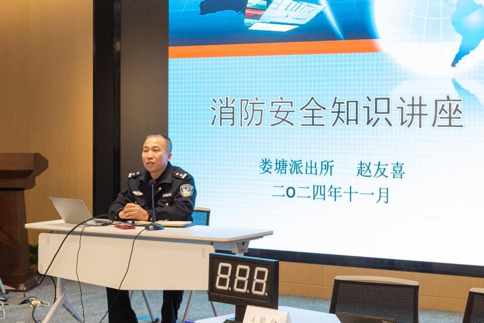 在培訓(xùn)宣講環(huán)節(jié),邀請嘉定公安分局婁塘派出所民警趙友喜作消防安全專題培訓(xùn)。培訓(xùn)通過案例分析,講解防火常識、火災(zāi)應(yīng)對方法、電信詐騙常見形式和防范技巧等,幫助職工和學(xué)生增強消防安全和反詐騙意識,提高安全認(rèn)知、隱患排查和應(yīng)急處置的能力。