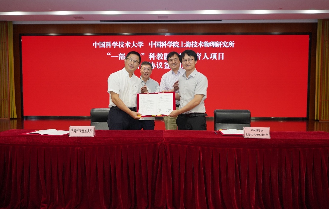 7月17日下午,中國科學(xué)院上海技術(shù)物理研究所與中國科學(xué)技術(shù)大學(xué)簽訂“一部六院”科教融匯協(xié)同育人項目合作協(xié)議。雙方將在人才協(xié)同培養(yǎng)、科技聯(lián)合攻關(guān)、科教資源共享、深化學(xué)術(shù)交流等方面開展進(jìn)一步合作。中國科大校長常進(jìn)、黨委副書記周叢照,上海技物所所長丁雷、副所長胡偉達(dá)出席簽約儀式。會議由周叢照主持。
