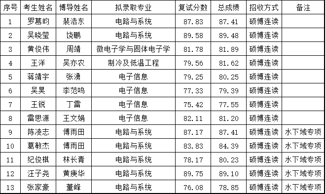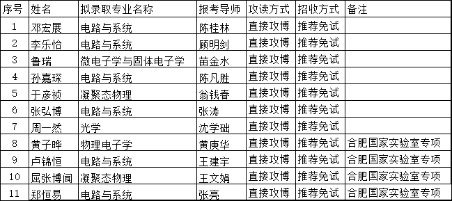 1、擬錄取直博生11名(其中國(guó)家實(shí)驗(yàn)室聯(lián)合培養(yǎng)博士專項(xiàng)(合肥)4名):