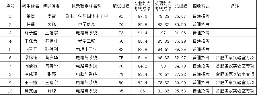 2、擬錄取普招博士生10名(其中國(guó)家實(shí)驗(yàn)室聯(lián)合培養(yǎng)博士專項(xiàng)(合肥)5名):