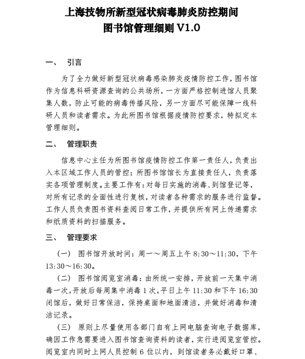 上海技物所新型冠狀病毒肺炎防控期間圖書館管理細則