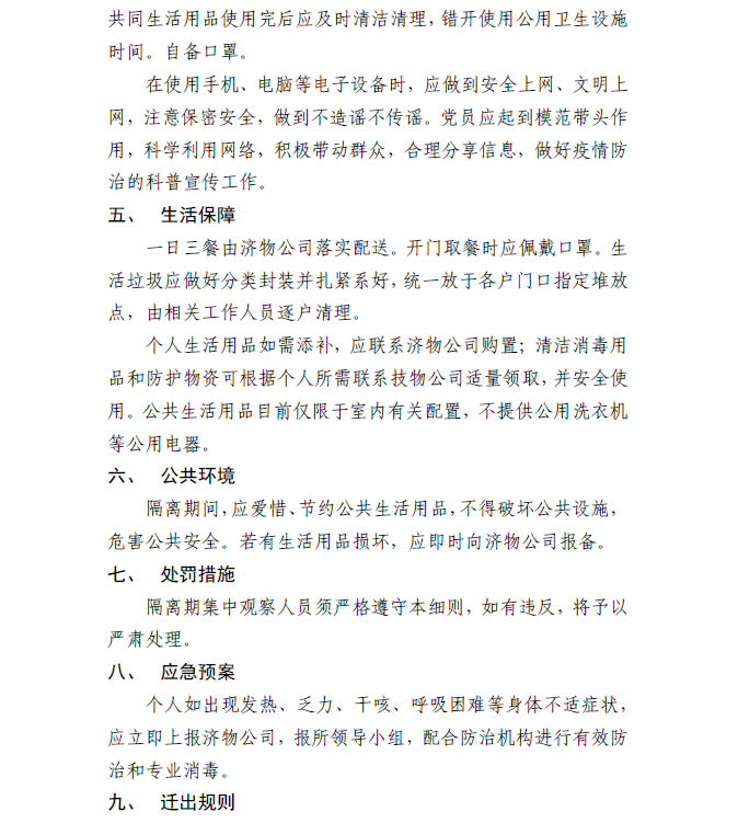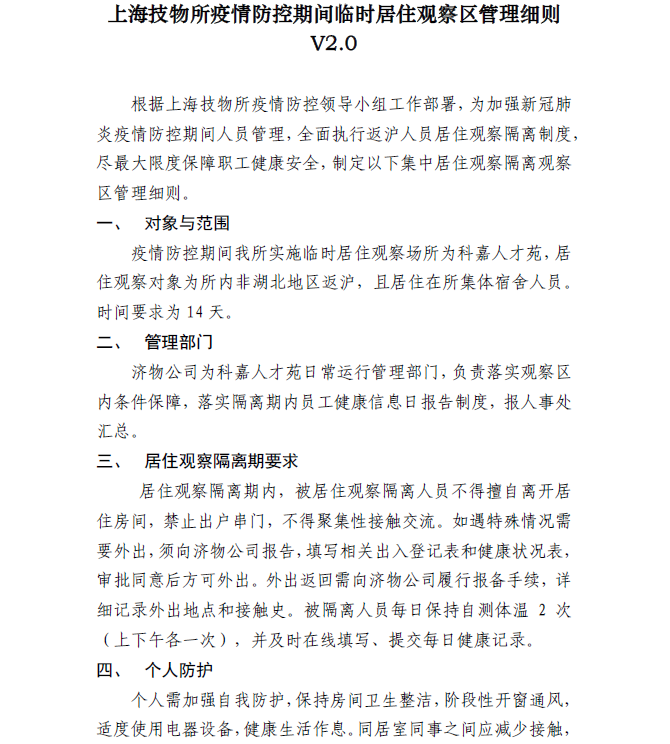 上海技物所疫情防控期間臨時(shí)居住觀察區(qū)管理細(xì)則